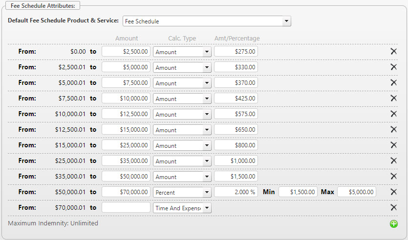 icon to configure the first tier of the fee schedule which begins at a "from" amount of "$0.00". - Next, enter the "to" amount in the first "Amount" field.
