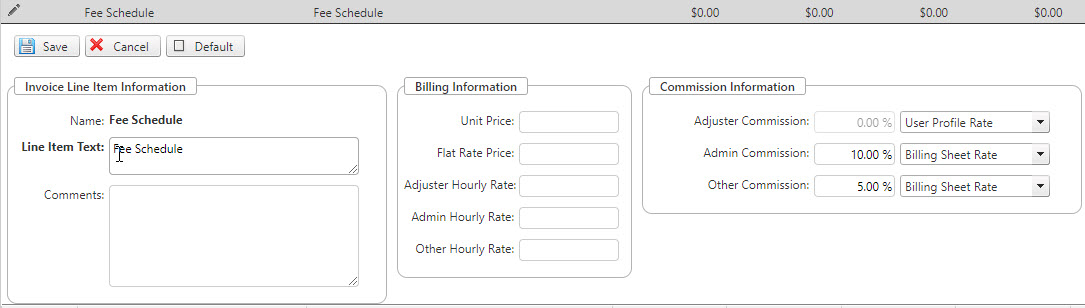 - If the Line Item is for the fee schedule portion of the invoice, then it will automatically apply commission to the claim's assigned adjuster.