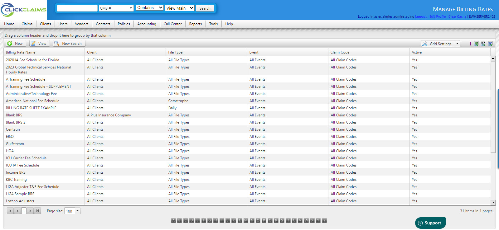 - Ensure that the BRS is flagged as "Active" if it is to be used for invoice creation. If unchecked, it won't be available for selection on the claim's "Billing" tab during the invoice creation process.