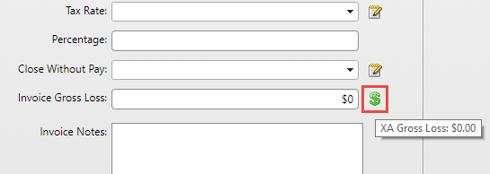 - Invoice Gross Loss (GL): XA messages can be customized to include Gross Loss (GL) amount, which would then be displayed in the CMS Billing/Indemnity screen, as shown here:
