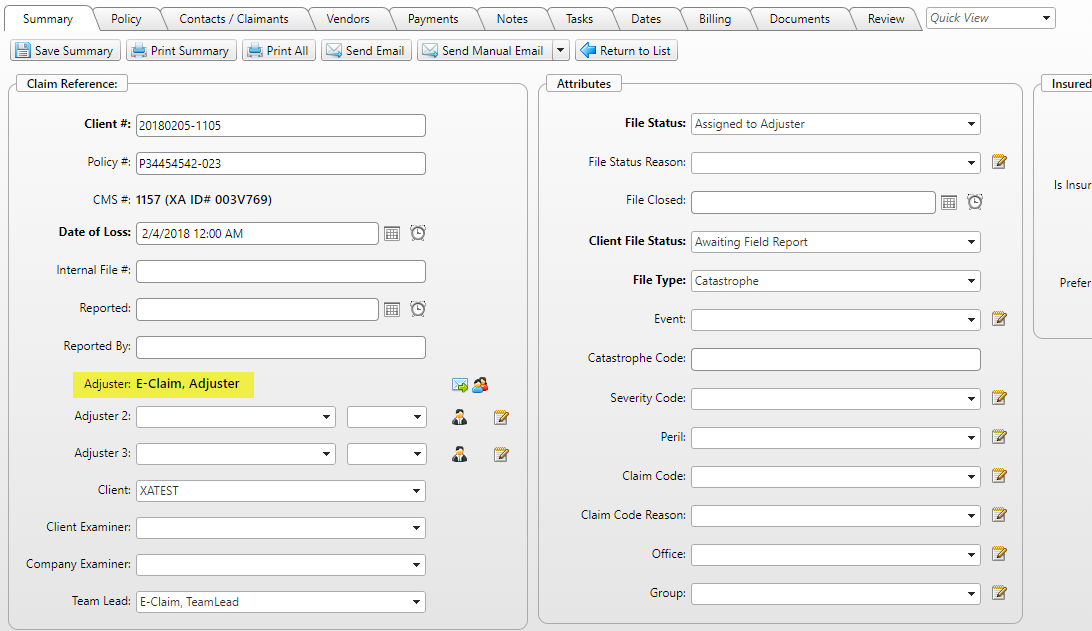 - Adjuster Assignment: If the claim already exists in CMS as “Open – Not Assigned”, when the claim is assigned to the adjuster in XactAnalysis, the claim can in turn be assigned to the adjuster in CMS automatically updating the file status to “Assigned to Adjuster”.